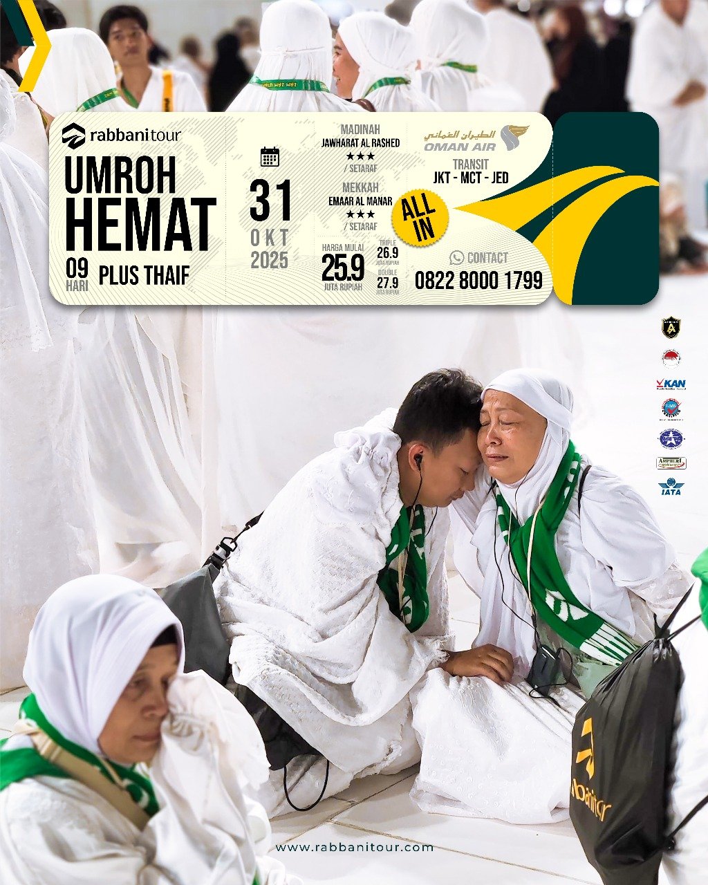 Rabbanitour menyediakan banyak pilihan tanggal keberangkatan dengan pilihan paket dan maskapai penerbangan untuk menjamin kenyamanan perjalanan umroh Anda dan keluarga.